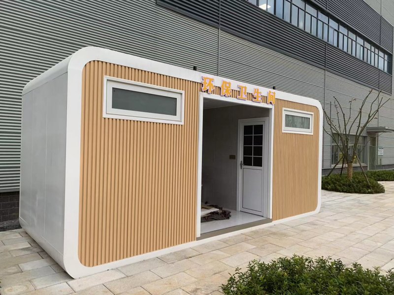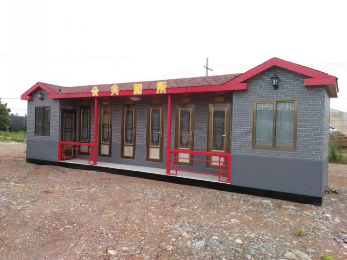 MORE拼裝廁所;在廠里做好各個廁所部件,再到現場組裝在一齊,適合不易運輸的大型廁所。這座箱式廁所,女廁5個蹲位內配工具間,男廁2個蹲位+2小便斗,第三衛生間由殘疾馬桶、助力洗手盆和兒童馬桶、兒童洗手盆外加嬰兒臺等設施。廁所前后有窗,通風采光,前部走廊裝有屋檐,防雨防曬。此廁所位于公路綠道邊,整體大氣,功能齊全,造型美觀,是一道難得的靚麗景觀!